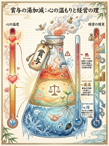賞与は、会社の“心の温度”を伝える水。 でも、温度が高すぎると蒸発してしまう。 ちょうどいい温度で、ちょうどいい量を。 それが、経営者の腕の見せどころです。